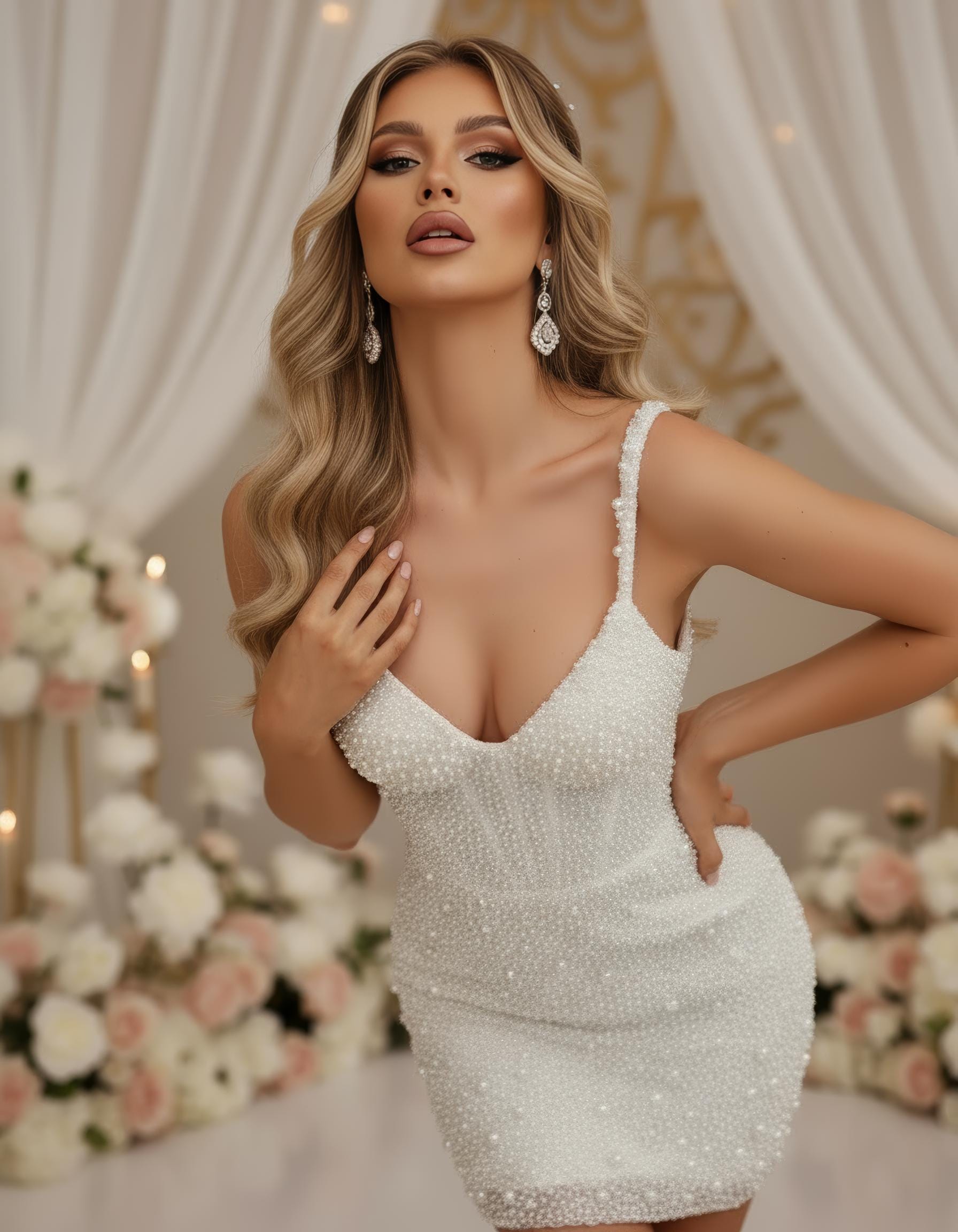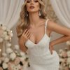 Luxury Pearl Mini Wedding Dress: Beaded Spaghetti Strap